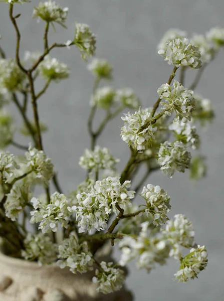 This blossom flower stem is immensely beautiful and will quickly become your new favourite. With its delicate white flowers it is a gorgeous contrast with the natural structure of the branch. They will add so much beauty to any arrangement. Please note: Due to the nature of the materials used, some shedding is to be expected. H53 x W13 cm AA botanicals are made to the highest standard. Many of our flower heads and plants are made from hand-painted fabric, attached to resin stems (materials will vary depending on flower type). Flower heads will need be shaken free of dust or blasted with compressed air. To keep your flowers looking fabulous for as long as possible, store away from direct sunlight and moisture to avoid colour fading.
