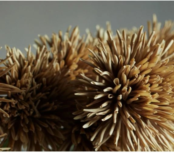 We adore the Dahlia with its wonderfully textural head. Providing a great focal point it is beautiful with stems like Seedpod, Pampas and Savannah grass, keeping the colour tonal and the texture ramped up to the max. A stunning addition to soft white and cream hues like Wolftail, Melaleuca and Strilingha. Add in pine branch dusk and marsh fern and you have stunning collection of botanicals