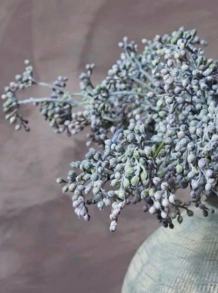 Beautiful bunches and bouquets always feature a wonderful array of different shaped and sized blooms and berries are integral in making our gatherings delight the eye. In a super soft hue, the morning mist berry is a textural stem that will break up large blooms like Hydrangea and Roses, add a layer to Amarinthe orchid, Pokeberry and Scabiosa. This stem also compliments foliages like pine branch dusk and marsh fern. Perfect in bud vases, the morning mist berry will be a huge hit this season Dimensions: L65 x W14 cm Care instructions: All our faux flowers, foliage and plants can be wiped down with a damp cloth if needed. Flower heads will need be shaken free of dust or blasted with compressed air. To keep your flowers looking fabulous for as long as possible, store away from direct sunlight and moisture to avoid colour fading. AA botanicals are made to the highest standard. All of our flower heads and plants are made from hand-painted fabric, attached to resin stems.