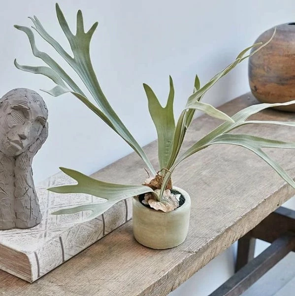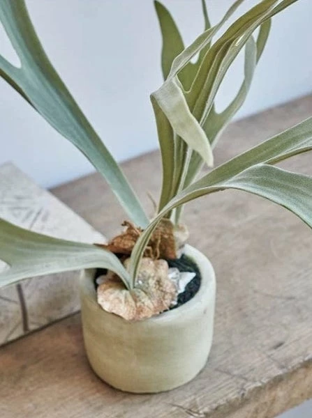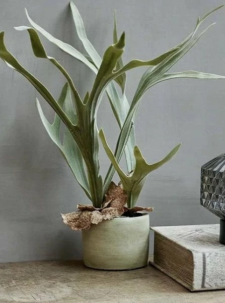 Perfect for pepping up any space, our Staghorn plant is a firm AA favourite. Ready potted in a concrete-effect pot – it really doesn’t get easier! H56 x Dia 30 cm Pot Dimensions: H9.5 x Dia 12.5 cm AA botanicals are made to the highest standard. All of our flower heads and plants are made from hand-painted fabric, attached to resin stems. All our plants are set in resin or metal pot. Materials will vary depending on plant type.