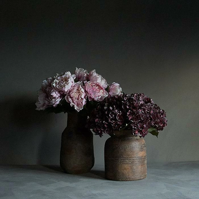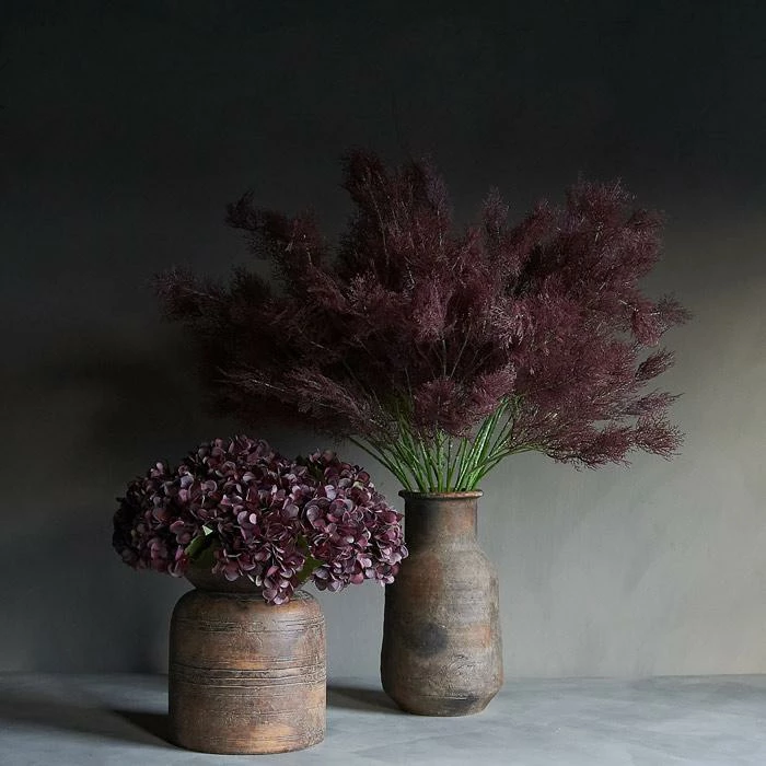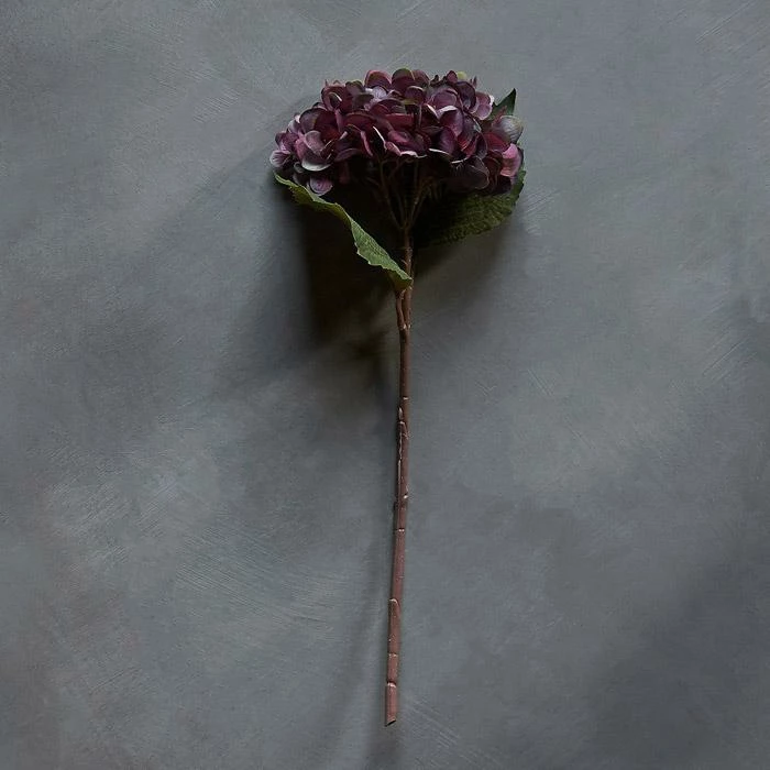 Our showy hydrangea stems add an instant element of softness and texture to an interior. Their pretty pom pom shape and ethereal petals are amongst AA’s favourites. Beautiful clustered together, or toppling over vessels. Approx Height: 46cm We’ve been hugely inspired by all things foraged and wild this season and have literally scoured hillsides and even roadsides for inspiration for our beautiful blooms. More than ever we have embraced the beauty in each stage of life from budded branches to withering grasses. Materials: Silk head / resin stem with metal wire (materials will vary depending on flower type). To keep your flowers looking fabulous for as long as possible, store away from direct sunlight and moisture to avoid colour fading. AA botanicals are made to the highest standard. All of our flower heads are made from hand-painted fabric, attached to resin stems. Please note: Some of our stems can be placed in water-filled vases. All meadow flower stems are wrapped in paper and are therefore not waterproof. Abigail Ahern Faux Botanicals are accredited for trailblazing a fresh take on faux botanicals our collection for this season is our most sumptuous yet. Deeply influenced by the summer landscape you’ll find lots of native boughs, unique tendrils, trailing fronds and wild flowers.