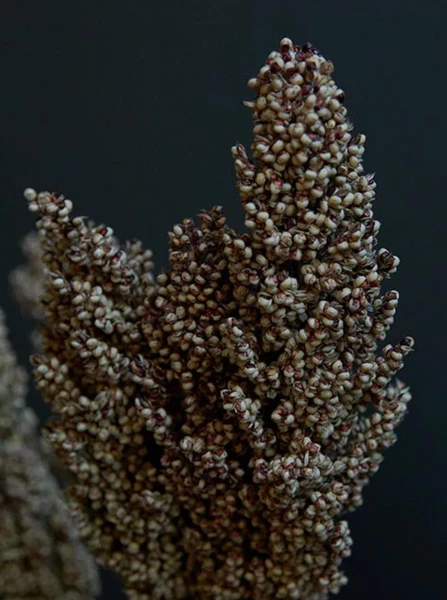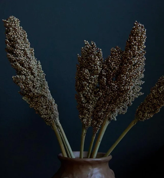 Our Sorghum stem is a visual treat, we absolutely love the contrast between its sleek bamboo-like stem and its abundant seed head. With a texture reminiscent of wild feathery grass, this stem is sure to take your floral arrangements up a notch. In warm natural hues, this stem will look so good bunched together or paired with softer flowers like peonies or hydrangeas. W5 x H70 cm AA botanicals are made to the highest standard. Many of our flower heads and plants are made from hand-painted fabric, attached to resin stems (materials will vary depending on flower type). Flower heads will need be shaken free of dust or blasted with compressed air. To keep your flowers looking fabulous for as long as possible, store away from direct sunlight and moisture to avoid colour fading.