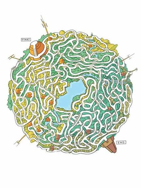 Sean C. Jackson has been illustrating and exploring mazes for his own enjoyment for more than 30 years. Inspired by art, architecture, and the natural world, his colourfully detailed mazes offer imaginative and meditative journeys through village streets, garden vistas, island habitats, castle grounds, scenic towns, and gravity-defying surreal situations – each encouraging the mind to wander while following the paths. This large-format collection features nearly 50 absorbing single-page and full-spread mazes, sequenced with increasing complexity, and includes inventive bonuses such as mazes with two paths to follow and a maze that runs on the inside covers from front to back. Solutions are provided, but for those seeking mindful activity or hours of puzzle decoding entertainment, getting there will be half the fun. Paperback 64 pages Size – 28.1cm x 21.3cm
