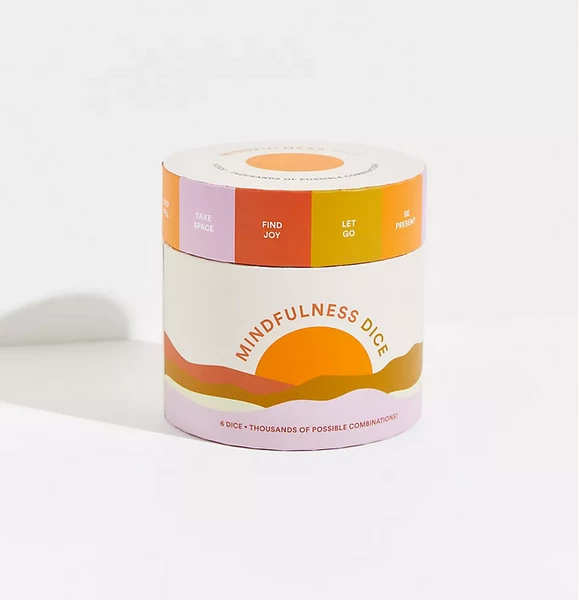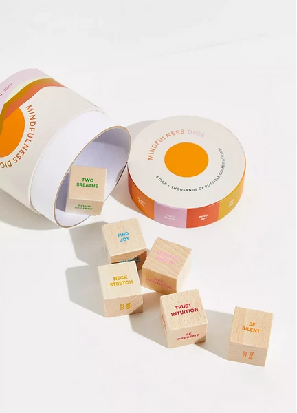 This fun-to-use, interactive set of six dice makes it easy to practice mindfulness in daily life. For anyone looking for more peace and balance, these dice offer a simple way to practice mindfulness in everyday life. MINDFULNESS DICE includes 36 soothing practices and thousands of possible combinations. Whether at home, work, or on the go, MINDFULNESS DICE makes it easy to find moments of peace, awareness, and joy―with a simple roll of the dice anyone can discover simple meditations, mantras, and exercises for calm and clarity. Delivered in an eye-catching, colorful box filled with six beautiful wooden, color-coded dice plus an instructional booklet, this is a great gift for anyone looking for some relief from the stresses of daily life.
