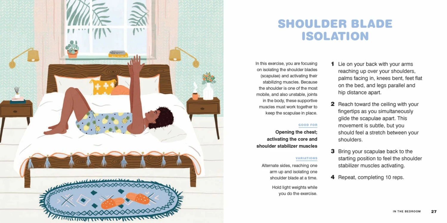 Practice peaceful pilates in your pyjamas. Featuring 40 easy to follow exercises, our book provides short pilates based workouts designed to tone muscles, release tension, and increase flexibility. Written by certified Pilates instructor Maria Mankin, the exercises include step by step instructions, notes on their physical benefits, and modification options. Readers will discover how to improve posture and core strength using a kitchen counter, stretch out their legs using the dining table, and tone their arms using the edge of the bathtub, plus so much more.