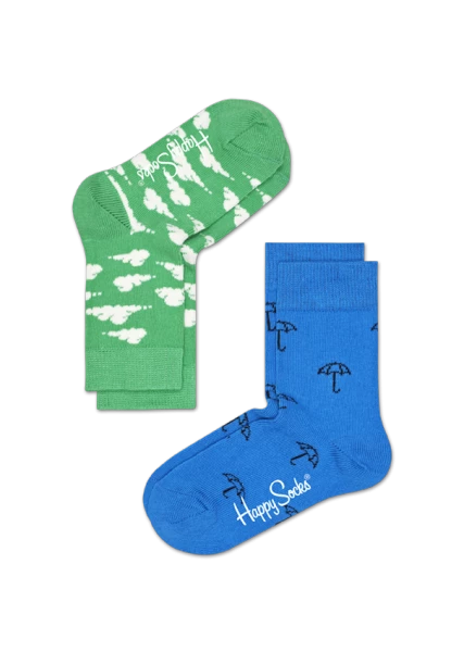¡Aleja los días de mal tiempo con estos calcetines de paraguas y los calcetines de nubes! Calcetines de color azul con paraguas de color negro combinan con los calcetines de color verde con nubes de color blanco. Calcetines de algodón peinado de alta calidad para mimar y cuidar a los pies de los más pequeños durante todo el día. Pack de 2 pares de calcetines para niños con tallas disponibles de la 0 hasta los 9 años. 80% Algodón peinado, 17% Polyamide, 3% Elastano
