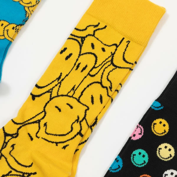 Men’s happy socks colourful smiley collaboration socks gift set, a nice little gift for that special someone or to treat yourself and your feet. Fashioned from a soft cotton blend with a hint of elastane for added stretch, they’re finished with cuffed ankles for a comfortable, everyday wear fit.