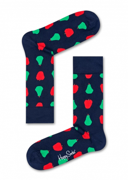 Your outfit will be ripe for the picking with these Fruit design socks. In this pair, a classic colour palette makes this jolly pattern even more fun, with ripe red apples and juicy green pears dotted across a simple navy blue background. Made from cosy combed cotton, these socks feel comfortable all day long – as well as making your outfit stylish and crisp. COLOURS Green, Red PATTERN Fruit