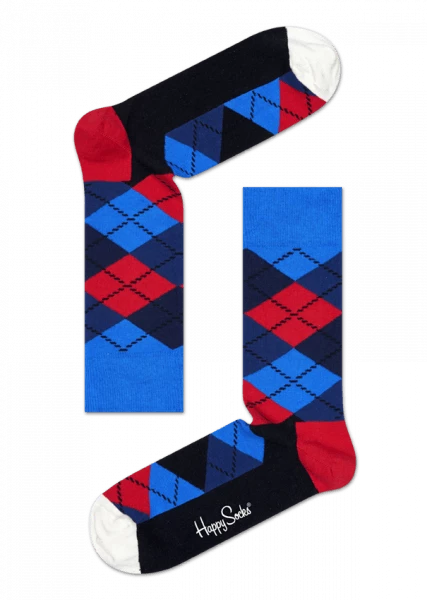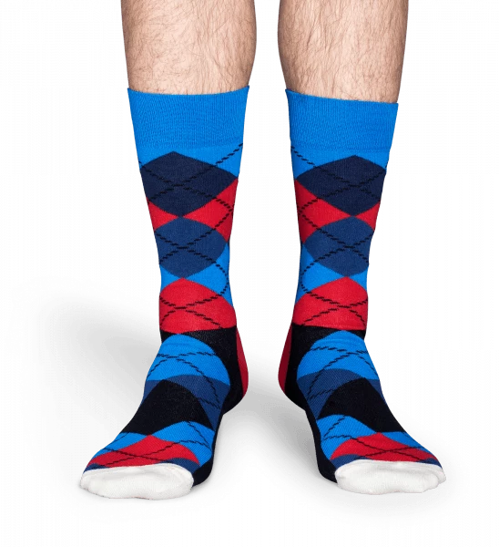 Vibrant blue and red colours make this pair of argyle socks by Happy Socks a favourite. Not only are the colours bright, cheerful and fun, but the classic pattern offers timeless appeal, too. Knitted from the softest fibers of combed cotton, argyle socks provide cozy comfort for men everywhere.