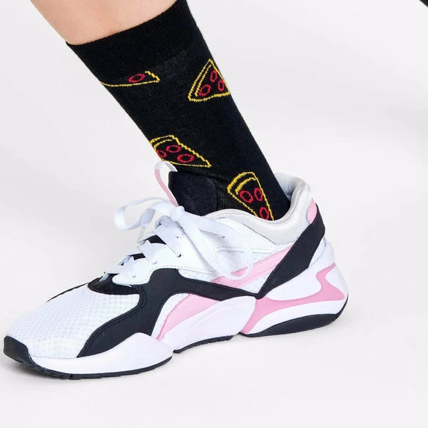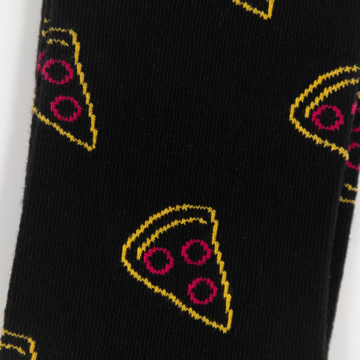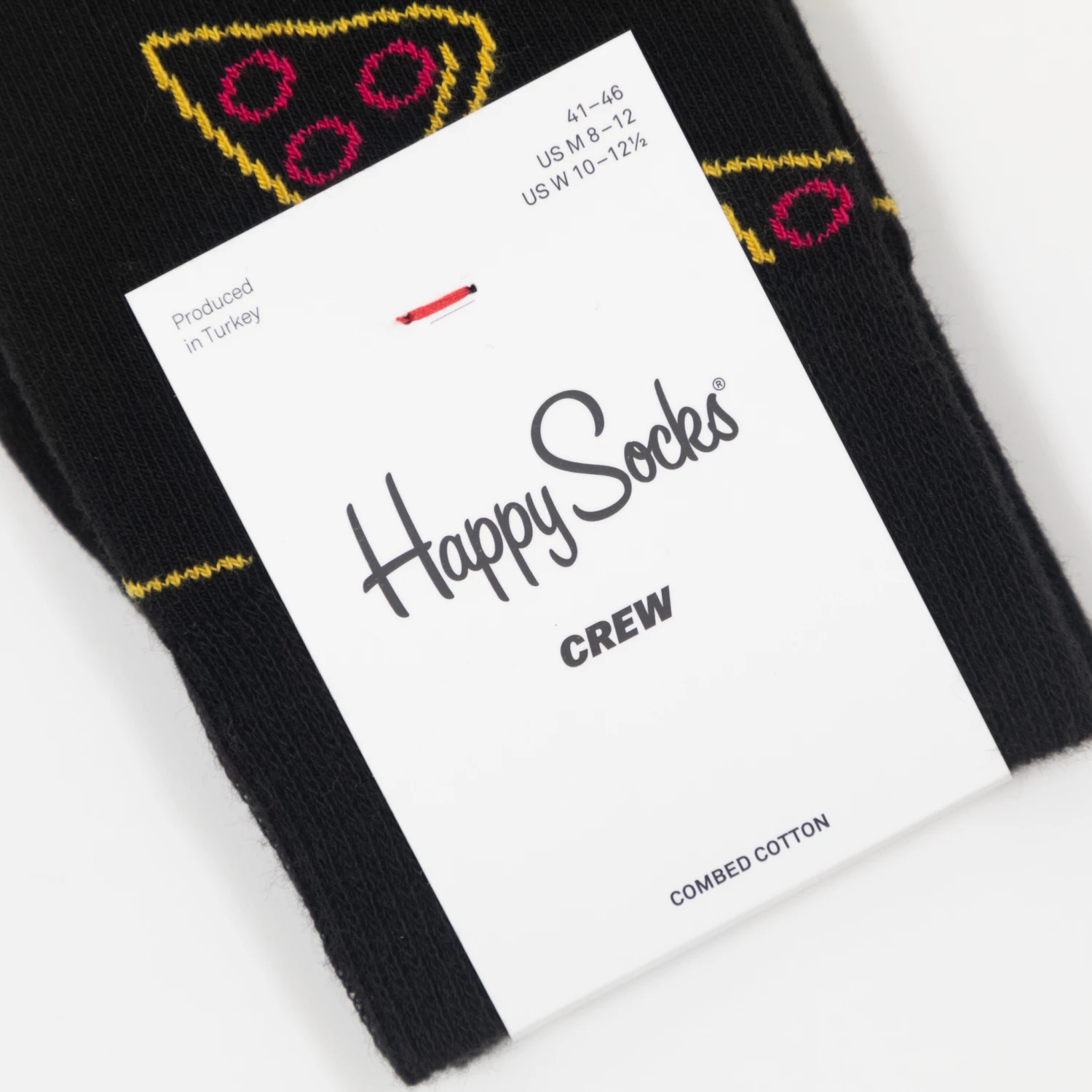 Men’s happy socks with all over pizza slice print in black, perfect for a pizza lover. Fashioned from a soft cotton blend with a hint of elastane for added stretch, they’re finished with cuffed ankles for a comfortable, everyday wear fit.
