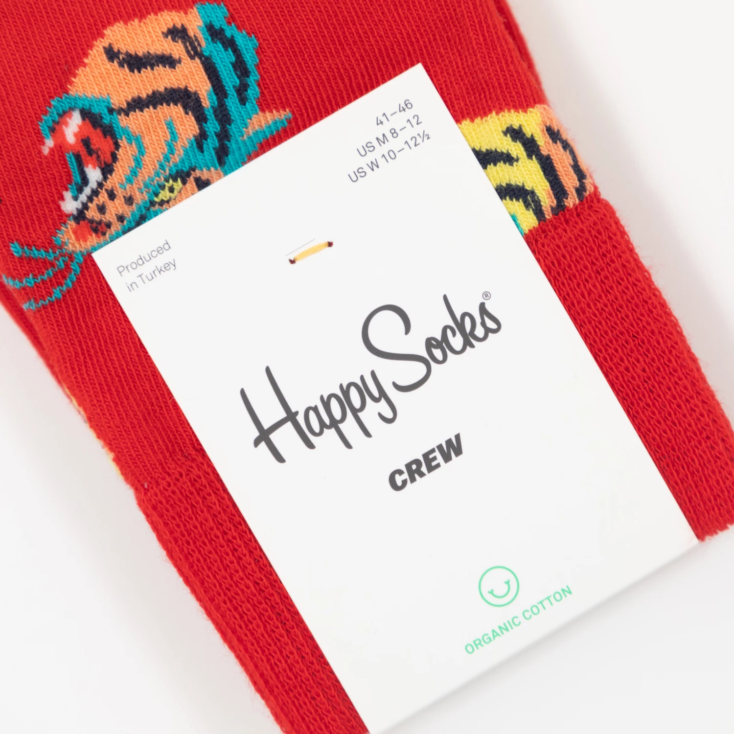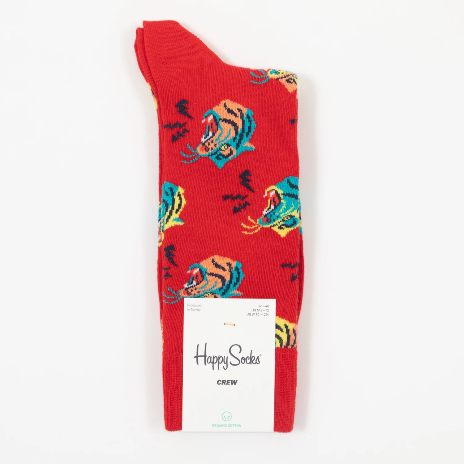 2022, The Year of The Tiger. Men’s happy socks with tiger animal print all over in red. Fashioned from a soft cotton blend with a hint of elastane for added stretch, they’re finished with cuffed ankles for a comfortable, everyday wear fit.