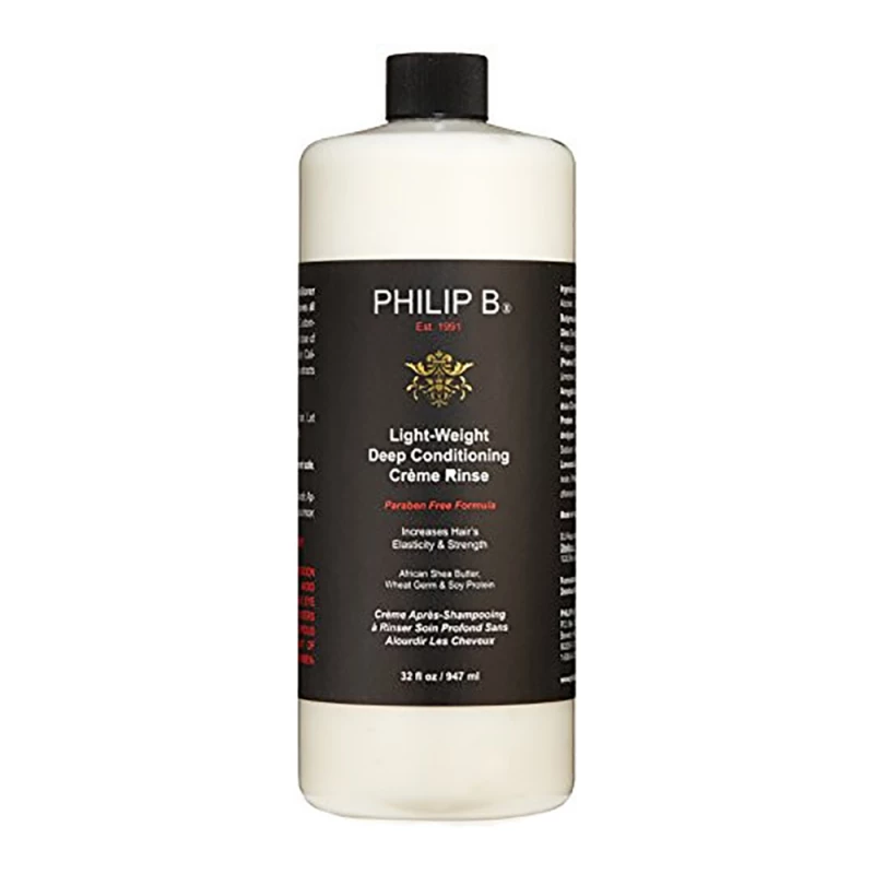 Detangling conditioning hair cream. Moisturizes, provides strength and elasticity. With African Shea butter, wheat germ and soy proteins. For all types of hair. Safe for colored or keratin treated hair. Free of parabens and phthalates. pH 5.5 to 5.7. 947 ml bottle. Light-Weight Deep Conditioning Creme Rinse (Paraben-free formula) is a moisturizing and detangling conditioning treatment that penetrates deep into the hair, does not add weight and leaves a silky finish. An aromatic botanical blend of pure plant extracts and essential oils increases hair elasticity and strength, adding shine and body.